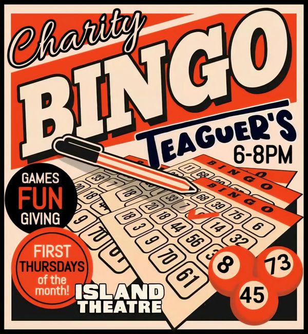 Join us at Teaguer's Restaurant from 6-8pm for Charity Bingo benefitting the Island Theatre every first Thursday of the month! It's a lot of fun and raises much-needed funds for the upkeep of the theater. 100% of the proceeds go to the local non-profit featured each week!